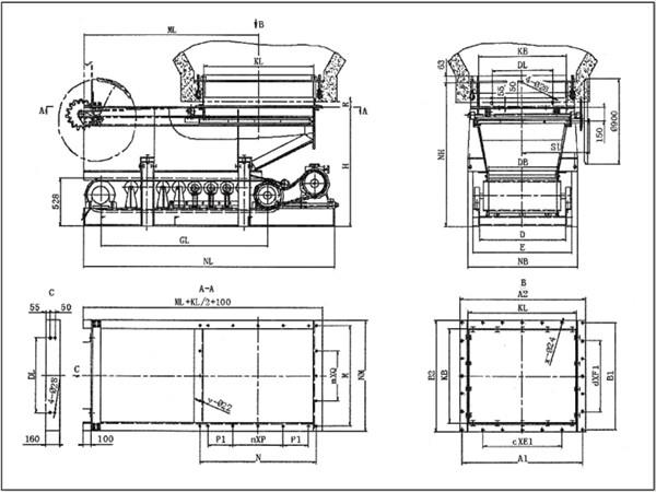 防砸閥門帶式(甲帶)給料機的閘門下增加了防砸閘門,當料倉中的大塊物料落下通過給料機時,首先了落在防砸閘門上,防砸閘門在物料的重力作用下打開,使物料經(jīng)緩沖后落到甲帶上,甲帶對物料起再一次的緩沖作用。因此,防砸閥門帶式(甲帶)給料機有效防止了大塊物料砸傷甲帶、皮帶、托輥。