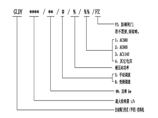 自動(dòng)閥門帶式(甲帶)給料機(jī)的型號(hào)說(shuō)明:
